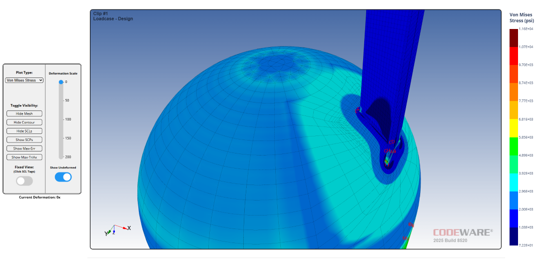 Full detailed reports, suitable for printing, are provided for all FEA runs.  In addition, an interactive 3D modeling view facilitates visualization of items such as stress error, SCLs, SCPs and model deformations.
