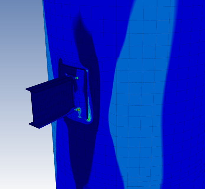Designers were often left having to perform another stress analysis with 3rd party software which created more work and expense.  COMPRESS solves this by including finite element analysis (FEA) capabilities for attachments on pressure vessel heads and cylinders.  These attachments include various shapes such as I-Beams, Channels, Tees, Platform Clips and Flat Bars.