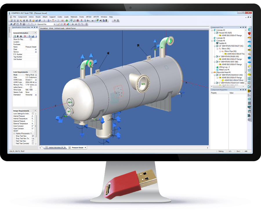Connect the USB Network Security Key to a dedicated computer to host the Codeware license and simultaneously run COMPRESS and INSPECT on unlimited workstations. The network license can also be used as a single user license connected straight to the workstation.